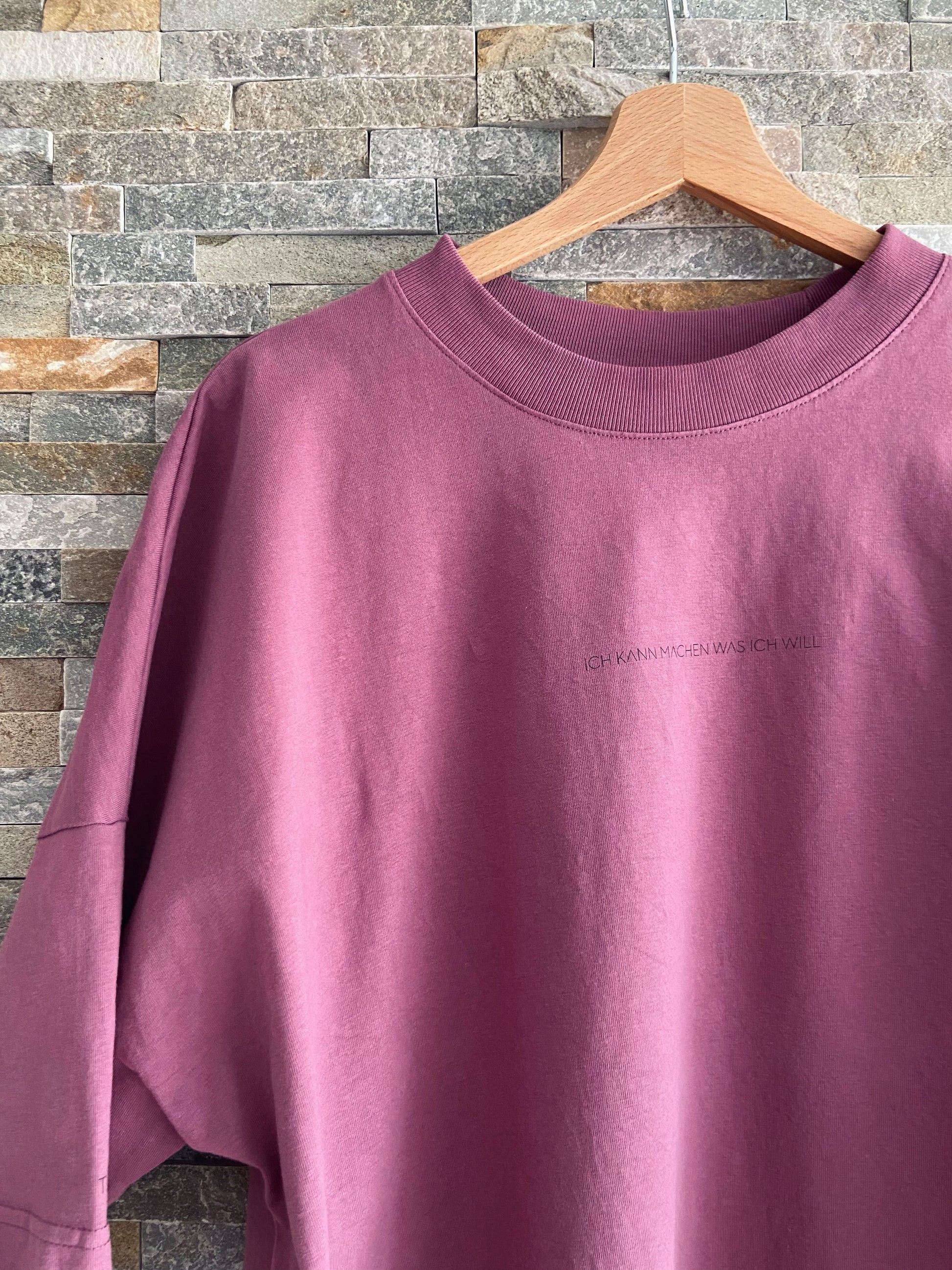 T-Shirt mauve mit schwarzem Siebdruck "Ich kann machen was ich will"
